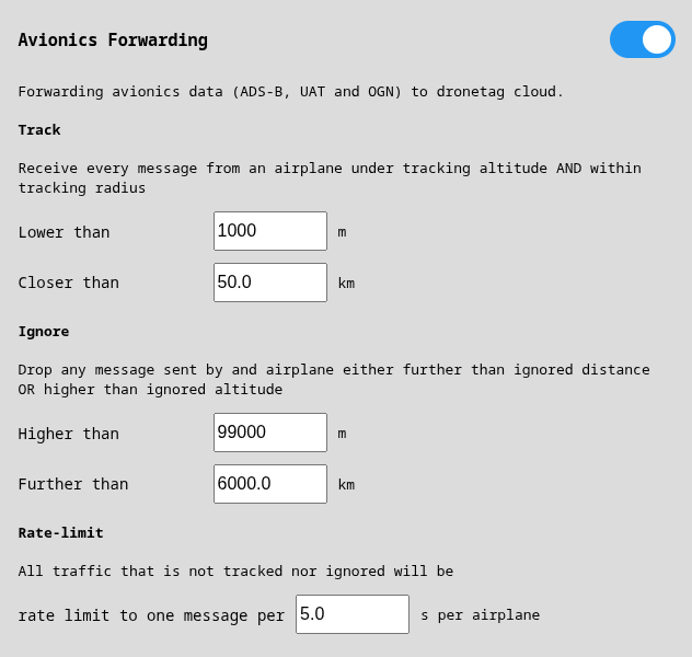 - enable/disable forwarding of aviation messages