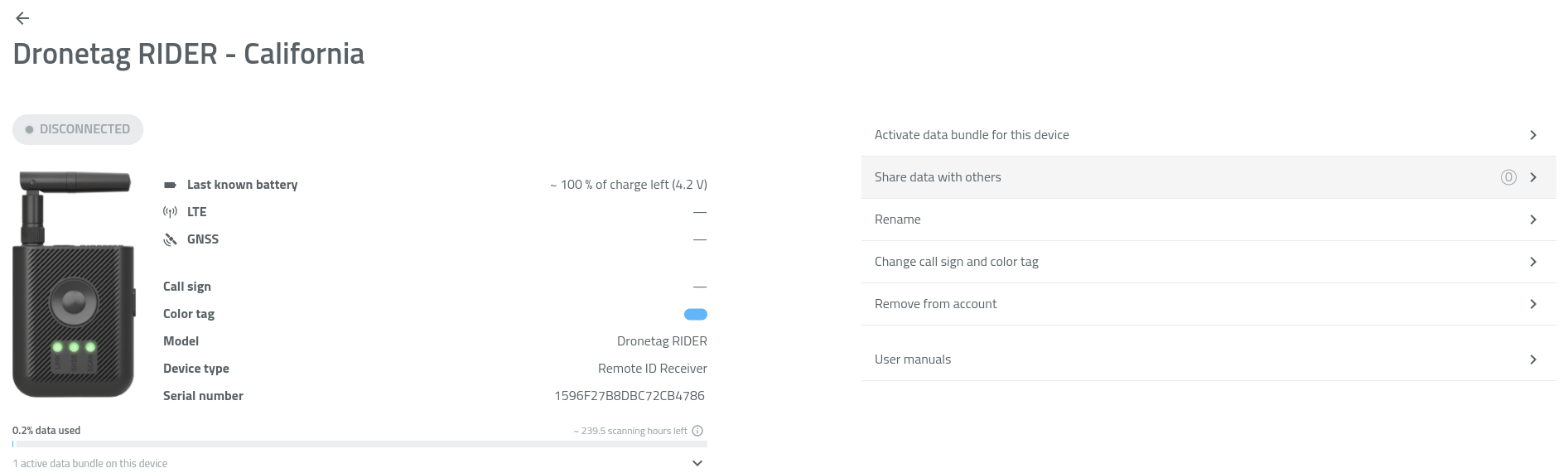 Without a Data Bundle, RIDER can still be used via Bluetooth with Drone Scanner (Gen. 2) but without cloud features.
