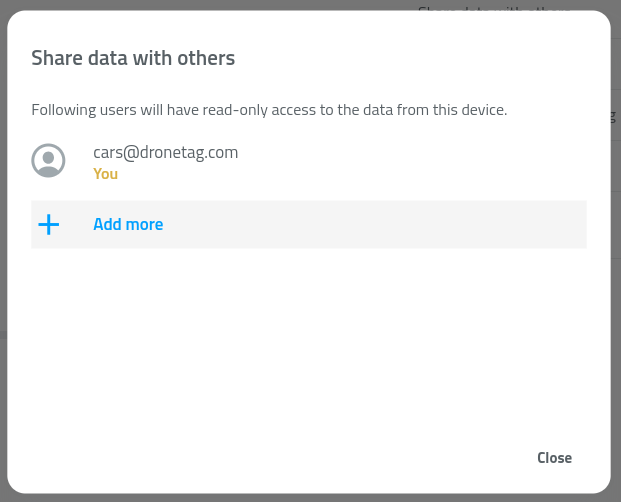 In the Dronetag app, you can share live data from your Dronetag RIDER or Dronetag Scout device with another user who also has a Dronetag account.
