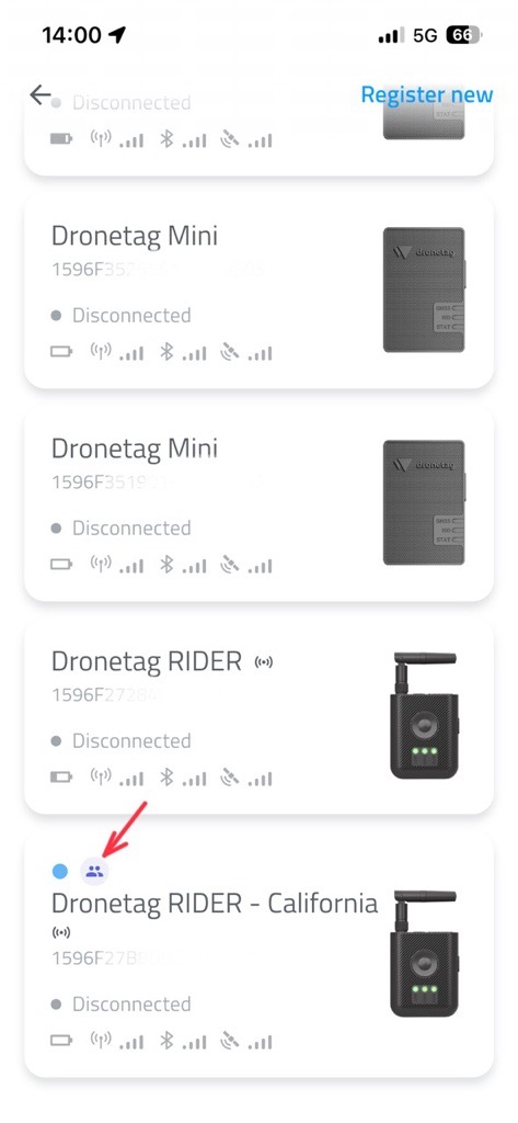 - Select your Dronetag RIDER or Dronetag Scout.