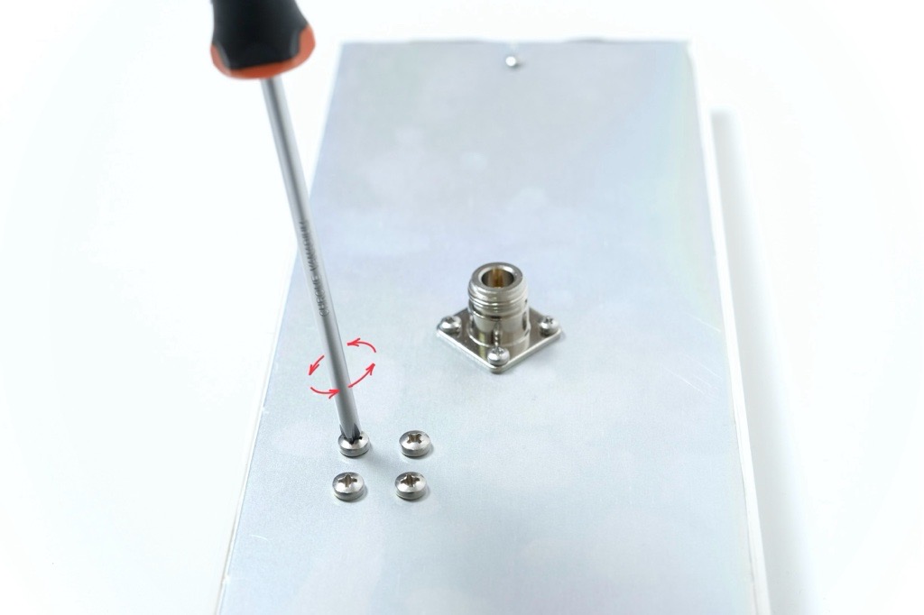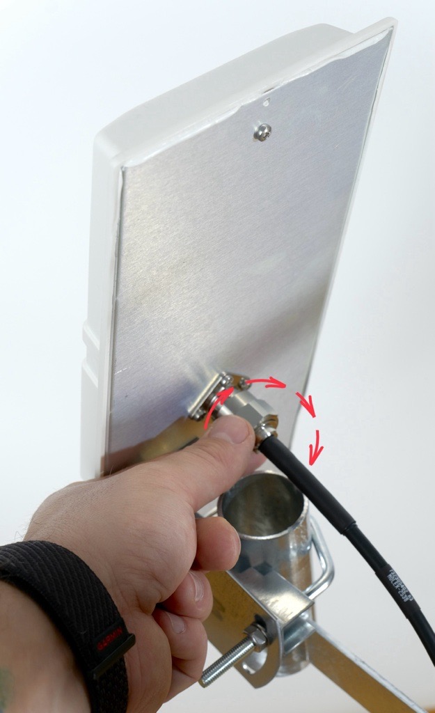 Screw the antenna marked with "1" sticker on its box to the connector marked with the same sticker